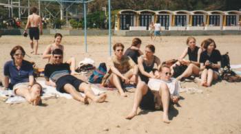 Am Strand (v.l.n.r.) Birgit, Jens, Kathrin, Sebastian S., Jenny,Ines, Sebastian M., Sandra F.