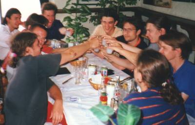 (Im Uhrzeigersinn von unten links) Jörsche, Andreas, Bertram (verdeckt), Jochen, Markus, Christoph, Steffen, Bernd, Sebastian S., Carl